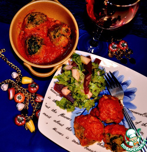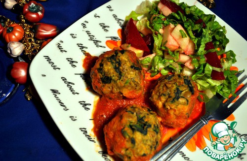 Рецепт «Фрикадельки из чечевицы и шпината в томатном соусе»: