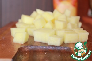 Картофель нарезать кубиками.