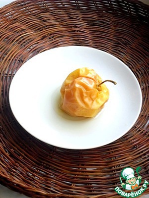 Снять шкурку и все внутренности, оставив на той же тарелочке, где яблоко запекалась,