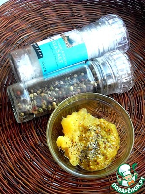 Добавить французскую горчицу (конечно, можно и простую, но с французской намного интересней вкус), добавить соль и перец молотый (соль для этого рецепта мне очень нравится морская), тщательно размешать до однородности, пробуем!