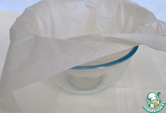 Огнеупорную форму выстелить пергаментом.