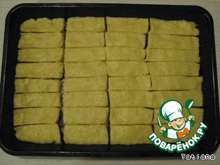 Выложить тесто на смазанный маслом противень, разрезать на "палочки".