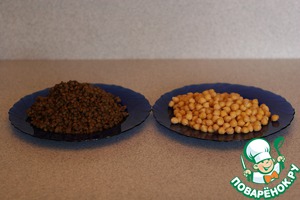 • Предварительно вымоченный нут варить до готовности 40 минут. Чечевица вымачивания не требует. Варить 20 минут. Воду слить. Немного остудить.