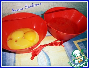 Возьмите довольно глубокую чашечку и разотрите в ней творог, сахар (100 г), желтки, ванилин, лимонную цедру...