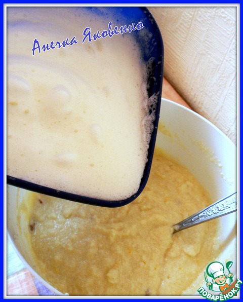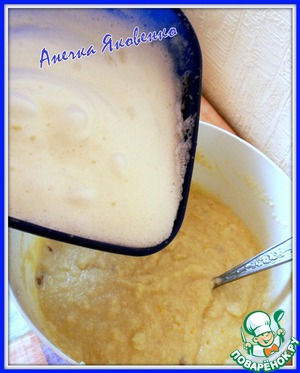 И очень осторожно смешайте творожную массу со взбитыми белками.