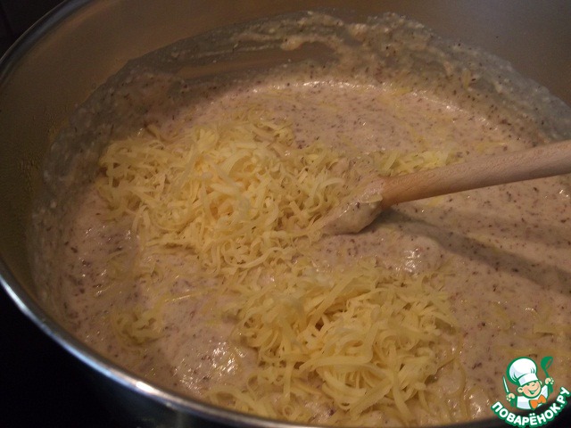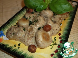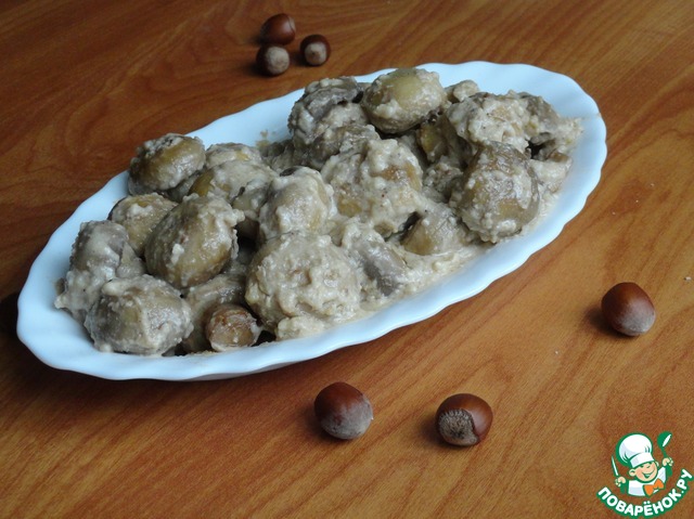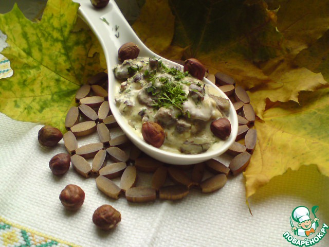 Рецепт "Шампиньоны в орехово-сырном соусе":