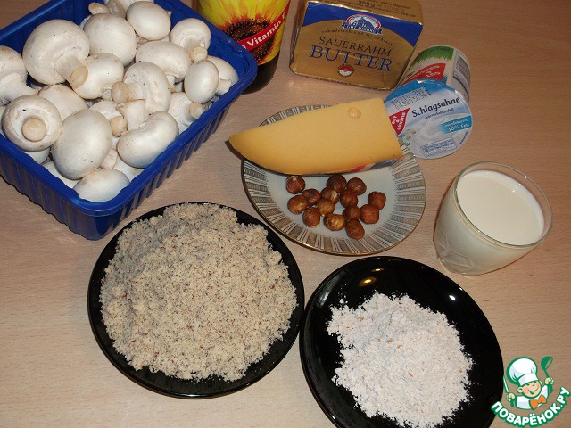 Ингредиенты для "Шампиньоны в орехово-сырном соусе":