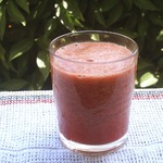 • Замороженную клубнику оставить при комнатной температуре на 20-25 минут. Измельчить блендером до однородной массы. Добавить сахар и холодный чай. Взбить. Разлить по бокалам.