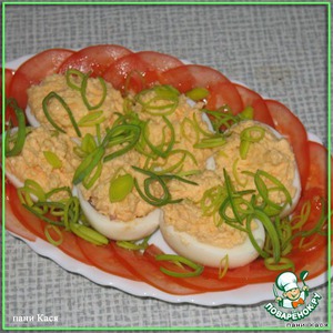 Рецепт «Фаршированные яйца с колбасным сердечком»: