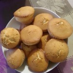 Муку и разрыхрытель просеять через сито прямо в взбитую сахарно-яичную смесь, всe перемешать миксером на маленькой скорости, выложить в формочки (в каждую до половины: тесто очень хорошо поднимется).