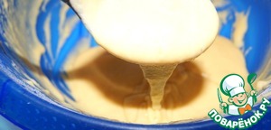 Яйца взбить венчиком, добавить масло и мучную смесь, все очень хорошо взбить миксером.