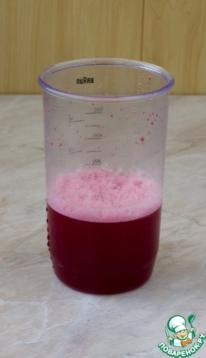 Теперь смешаем все три составляющих в большом стакане и взобъем блендером - напиток покроется красивой нежно-розовой пеной