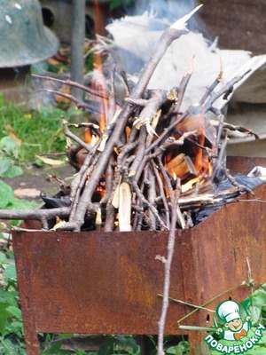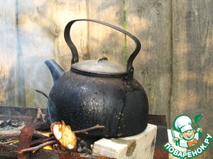 На огонь ставим чайник. Страшненький, но незаменим на даче!