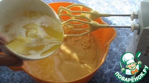 Теперь вводим размягченное сливочное масло и тщательно вымешиваем.