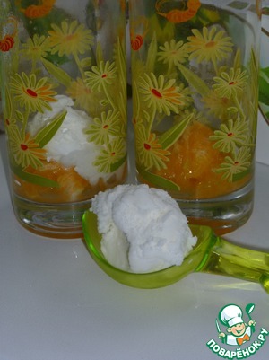 В чашки положите кусочки мандарина и по шарику мороженого