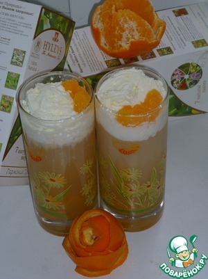 Оформите взбитыми сливками и ломтиком мандарина