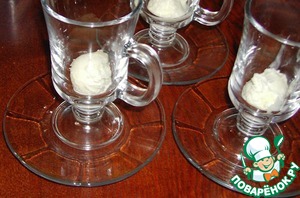 Так же аккуратно (по ложке) налить взбитое молоко. Немного пенки приберегите (примерно по 1 столовой ложке на бокал), она нам ещё пригодится.