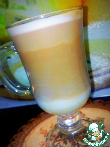 Сварить кофе, взбить молоко в пену. Я делала кофе с помощью кофе-машины, молоко взбивала паром. Подогретое до 60-70 С молоко также можно взбить с помощью френч-пресса или венчика.