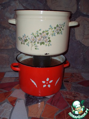 На крышку ставим банку вверх дном, а на нее кастрюлю с водой и в холодное место (подвал или еще куда нить).