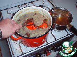 В процессе приготовления этого блюда жир, который выделился при варке, можно отделить. В результате получается не очень жирный продукт.
