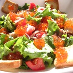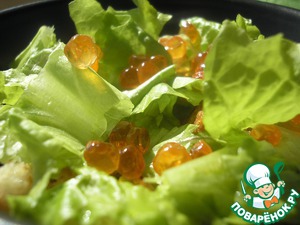 Открывая Звездную неделю, предлагаю попробовать салат из курицы. Помидоры придают ему сочности, а икра – некой пикантности. Ингредиенты отлично дополняют друг друга.