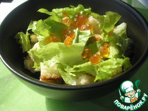 Заправлять салат нужно перед подачей на стол, чтобы сухарики оставались хрустящими.