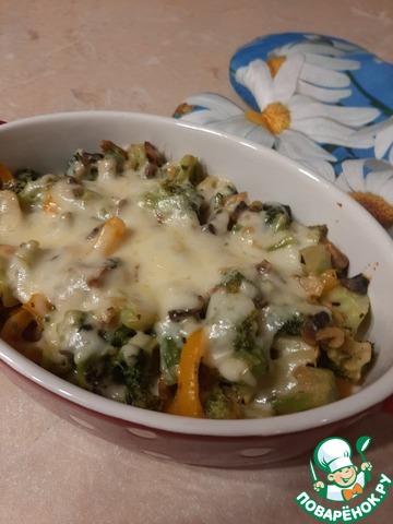 Рецепт «Жюльен с брокколи, болгарским перцем и грибами»: