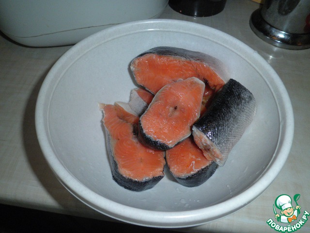 - Рыба (кижуч, думаю, можно брать любую красную рыбку) — 600-700 г
