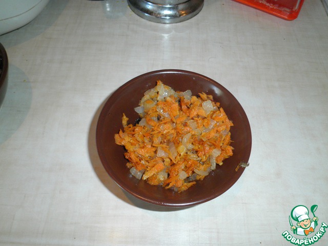 Hа сливочном масле немного обжарить лук и тертую на терке морковку,
