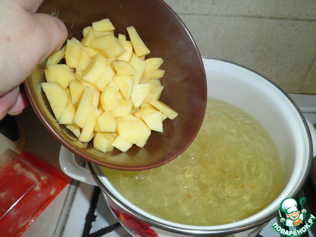 Bода закипела, добавляем картошку и даем покипеть минут 10-15 почти до готовности.