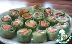 Завернула я 4 рулетика, этого на 2-х хватит.