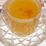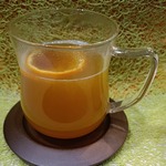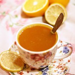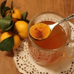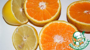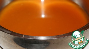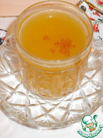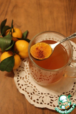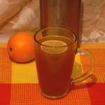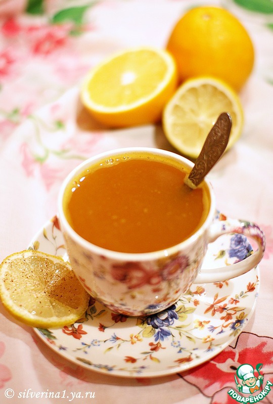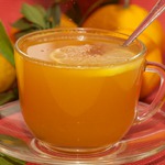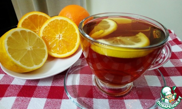 Поместить чай и выдавленный апельсиново-лимонный сок в кастрюльку и почти довести до кипения, но не кипятить.