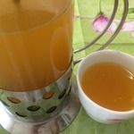 • Поместить чай и выдавленный апельсиново-лимонный сок в кастрюльку и почти довести до кипения, но не кипятить.