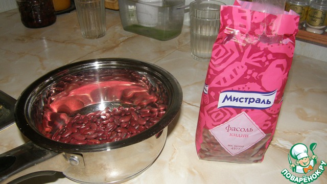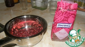 Фасоль я замачиваю минут на 15-20. Слить воду, залить холодной водой и поставить варить. Фасоль "Мистраль" варится быстро, 30-40 минут на упаковку 450 г.