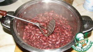 После того, как фасоль сварится, слить воду и слегка размять. Консистенция пюре не нужна.