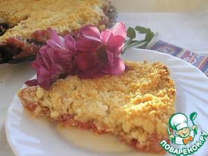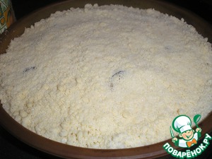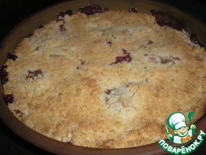 Равномерно посыпать крошкой сливы и поставить в разогретую духовку.