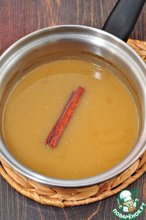 Яблочный сок налить в сотейник, положить палочку корицы, довести до кипения, на медленном огне дать покипеть минут десять, в самом конце добавить мёд, выключить огонь.