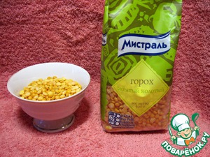 Мясной бульон процедить и положить в него горох. Варить до готовности.