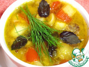 Рецепт «Суп гороховый с яблоками, томатами и черносливом»: