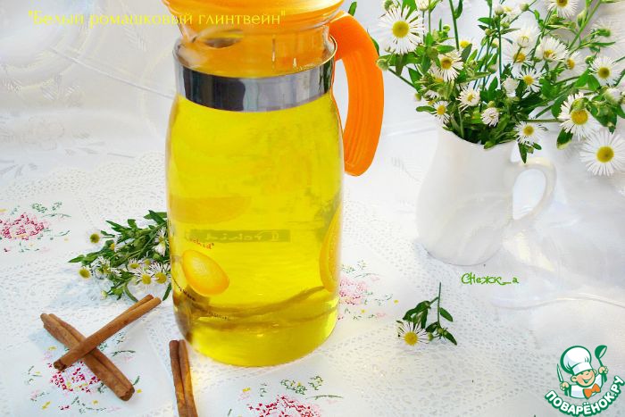 Мы привыкли, что глинтвейн - это непременно темный напиток, с насыщенным, тяжелым вкусом. Предлагаю приготовить вот этот глинтвейн - на основе ромашкового чая и белого вина. У напитка легкий, приятный вкус и аромат, но в то же время он обладает всеми необходимыми свойствами обычного глинтвейна - успокаивает, согревает, бодрит кровь и кружит голову.