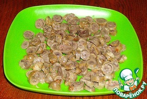 Куриные сердечки отварить в подсоленной воде в течение 0,5 часа.