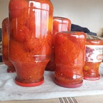 А тем временем ставим закипать 6 литров воды, чистим морковку, чеснок, перчик. Перемалываем всё это на мясорубке (я терла морковку на мелкой терке, мне так легче) и добавляем в закипающую воду. Туда же соль и сахар. Пусть все это покипить минут 10. Все, рассольчик готов.