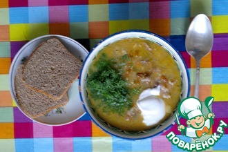 "Собираем " суп: к чечевице выкладываем тушеные овощи, разбиваем блендером (я не делаю полностью пюре, по просьбе мужа оставляю кусочки). Заливаем чечевичным отваром, доводим до кипения, солим. Кладем картофель и варим до его готовности. Вкусный суп готов :)