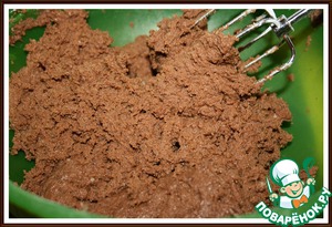 5. В 2 приёма ввести яйца в шоколадную смесь, взбить до однородности.