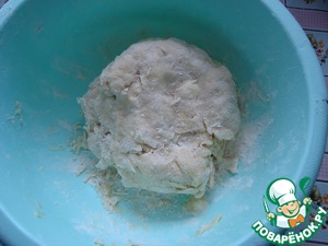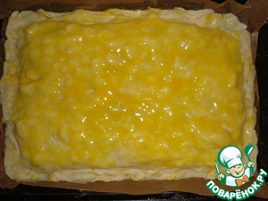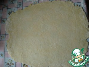 • 2/3 отдохнувшего теста раскатываем в пласт и перекладываем в форму, смазанную маслом.