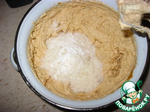 Хорошенько взбиваем,. затем всыпаем стружку, добавляем соду и ванильку, манку.