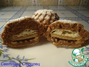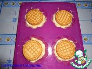 На начинку кладем светлое печенье с коричневой начинкой, чуть вдавливаем в тесто.