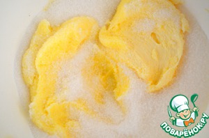 Сливочное масло комнатной температуры взбить миксером с сахаром, чтобы он полностью растворился.