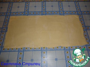 Размораживаем при комнатной температуре слоеное тесто. Немного его раскатываем.