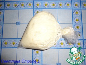 Укладываем салат в целлофановый пакет, отрезаем кончик уголка.